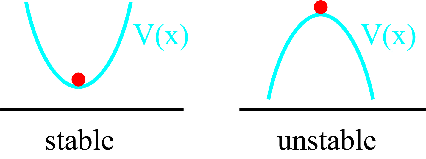 Fig. 5.5 Stable and unstable position of a particle in a potential.#