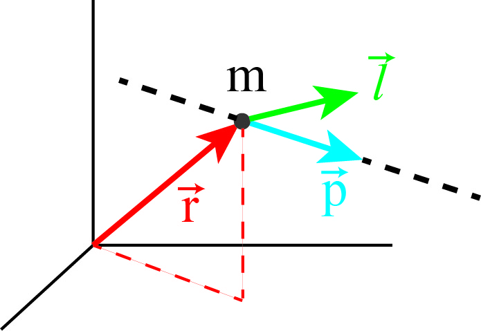 Further note, that since \(\vec{l} \equiv \vec{r} \times \vec{p}\), \(\vec{l}\) is perpendicular to the plane formed by \(\vec{r}\) and \(\vec{p}\).
