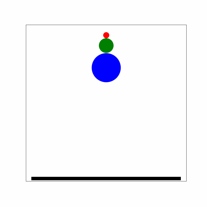 Fig. 7.4 Bouncing of three (super)balls.#