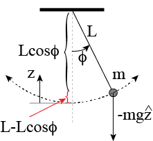 Another example of oscillatory motion is the pendulum. In its most simple form it is a point-mass \(m\), attached to a massless rod of length \(L\). The rod is fixed to a pivotal point that allows it to swing freely.