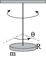 We take a straight metal wire. Suspend one end at the ceiling and attach a disc of radius \(R\) and mass \(m\) at the other end.