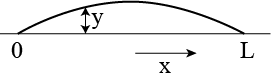 If we call the coordinate along the string \(x\), then the displacement of the string with respect to its equilibrium \(y\) is a function of \(x\): \(y = y(x)\). Obviously, the displacement is also a function of time, so we need to consider \(y(x,t)\) making it a much more complicated problem than our mass-spring.