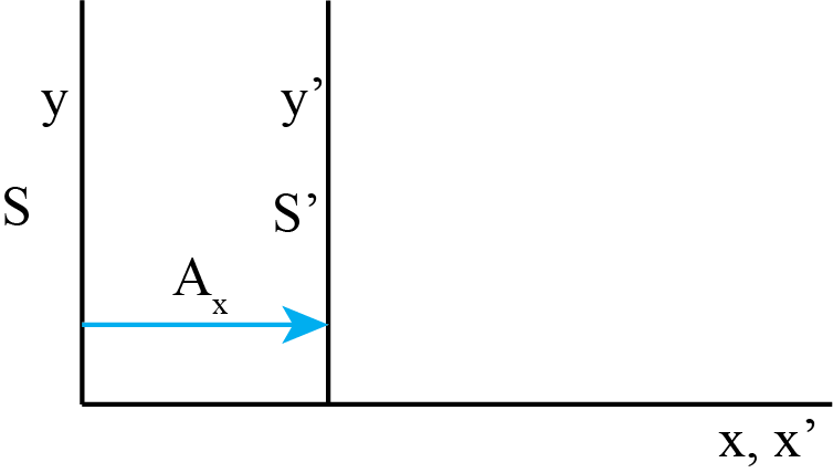 Fig. 14.1 Frame S’ accelerates with \(A_x\) with respect to S.#