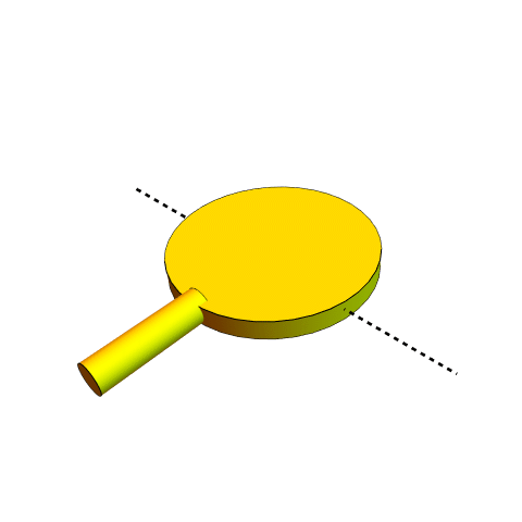 As the moment of inertia \({\bf I}\) is a real-valued symmetric tensor it can be brought to principal axis. You will learn this in the class Linear Algebra under the term eigen decomposition of a matrix. In plain words this means that there exists an orthonormal coordinates system (given by the principal axes) where the tensor only has diagonal elements (\(I_{i}=I_{ii}=I_{ij}\delta_{ij}\)) and that you can find this coordinate system by rotation. Each of the diagonal elements then corresponds to the moment of rotation around that axis. We will make use of this property shortly.