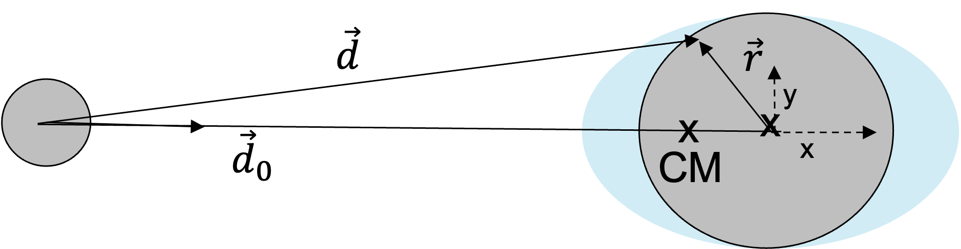 with \(r^2 = r_1^2 +r_2^2 +r_3^2 = x^2 +y^2 +z^2\) and \(\delta_{ij}\) the Kronecker delta”. From the construction it is clear that \(I_{ij}\) has 9 components but the off-diagonal components are symmetric (\(I_{xy}=I_{yx}, I_{xz}=I_{zx}, I_{yz}=I_{zy}\)), and only 6 unique components remain. The first component, for example, is \(I_{xx}=\sum_s m_s(y^2+z^2)\). That is consistent with our earlier definition as for a rotation around the \(x\)-axis the distance to this axis is given by \(\sqrt{y^2+z^2}\).