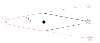 Nowadays this effect, called gravitational lensing, is observed on much larger scales. The light of a far-away galaxy is lensed by another closer-by galaxy and observed by us. If a far-away star/galaxy is directly behind one in our line of sight, we will observe the far-away “ring”.