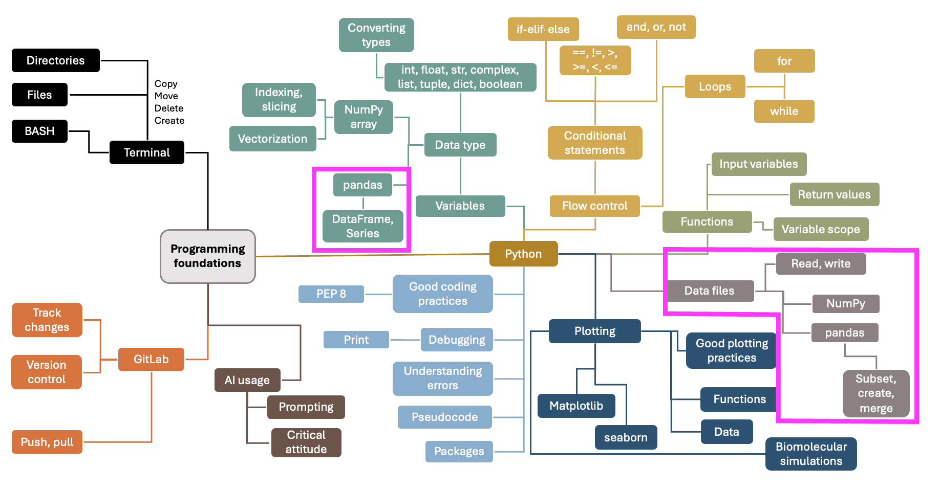 Often in nanobiology, you need to work with data. Data files can originate from (your) experiments or you may want to extract useful information from data files downloaded from online databases such as UniProt. Note that it’s also possible to directly access data from many databases within Python using specific packages and commands, but this is outside of our current scope.