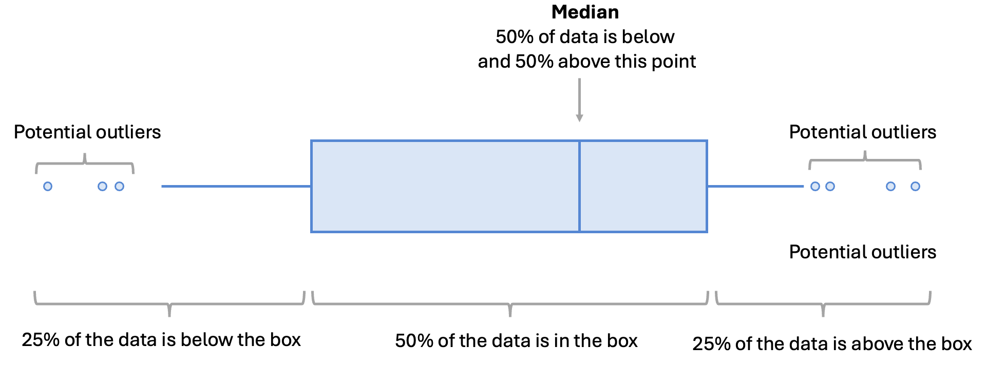 Histograms are useful to get an idea about the central tendency (highest peak in the data), variability (spread),skewness (is the distribution symmetric or leaning to one side), modality (is there one or multiple peaks), and presence of outliers.