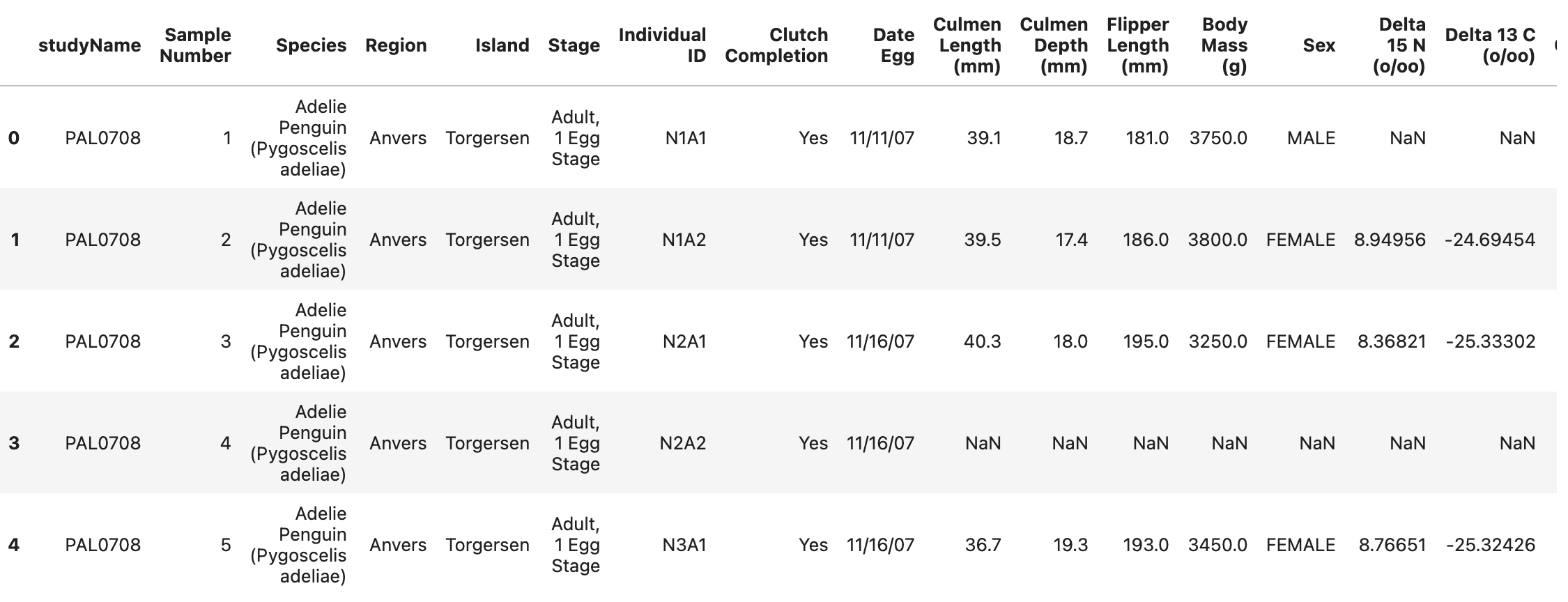 print(penguins.head(5))