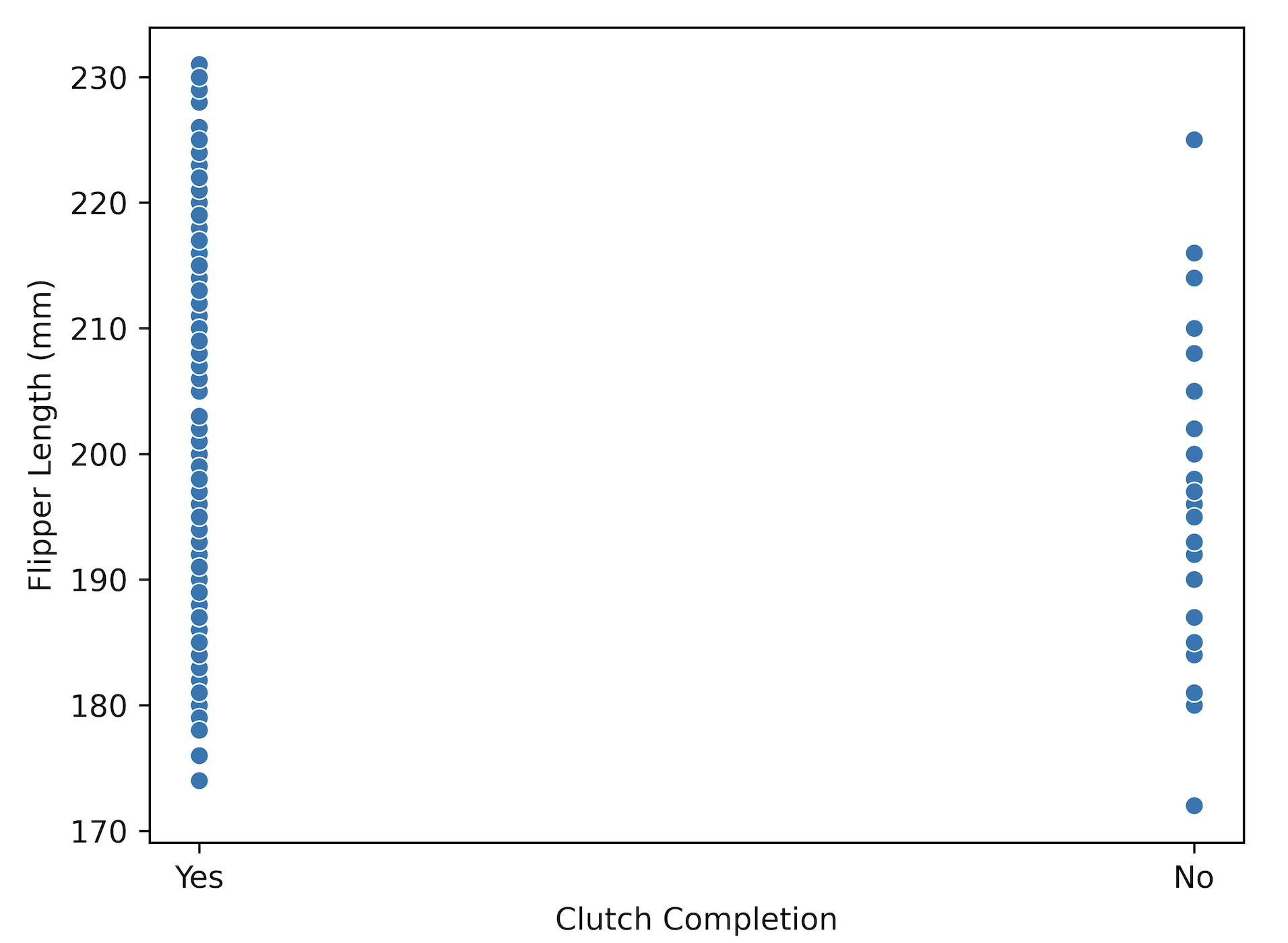 sns.scatterplot(data=penguins, x="Clutch Completion", y="Flipper Length (mm)")