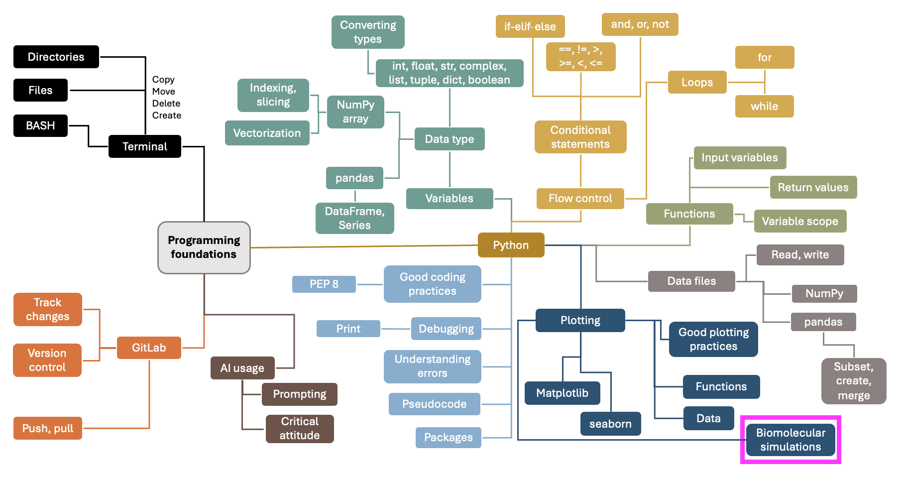After having learned how to work with data files and how to plot both functions and data, we will dive into simulations using Python. More specifically, you will be designing programs that simulate the behaviour of biomolecules in cells, which is very relevant in the context of nanobiology. For this purpose, it will be necessary to display the simulated molecules on the screen, e.g., to simulate the import of biomolecules from the cytoplasm into the nucleus, or vice versa.