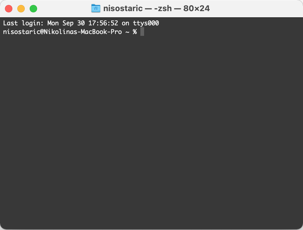 Open the Spotlight search by pressing command + Space, type in “Terminal”, and open the Terminal application on you computer.