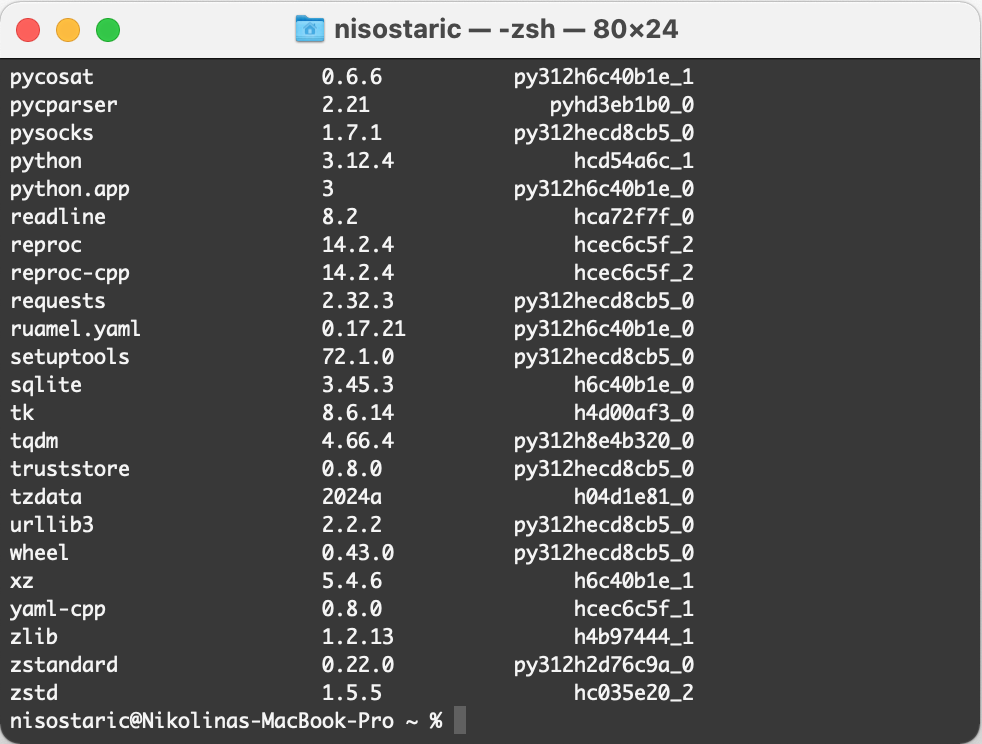 conda list. If your Miniconda installation was successful, you will see a list of installed packages (check the macOS tab in these instructions to see an example).During installation, if you accepted the