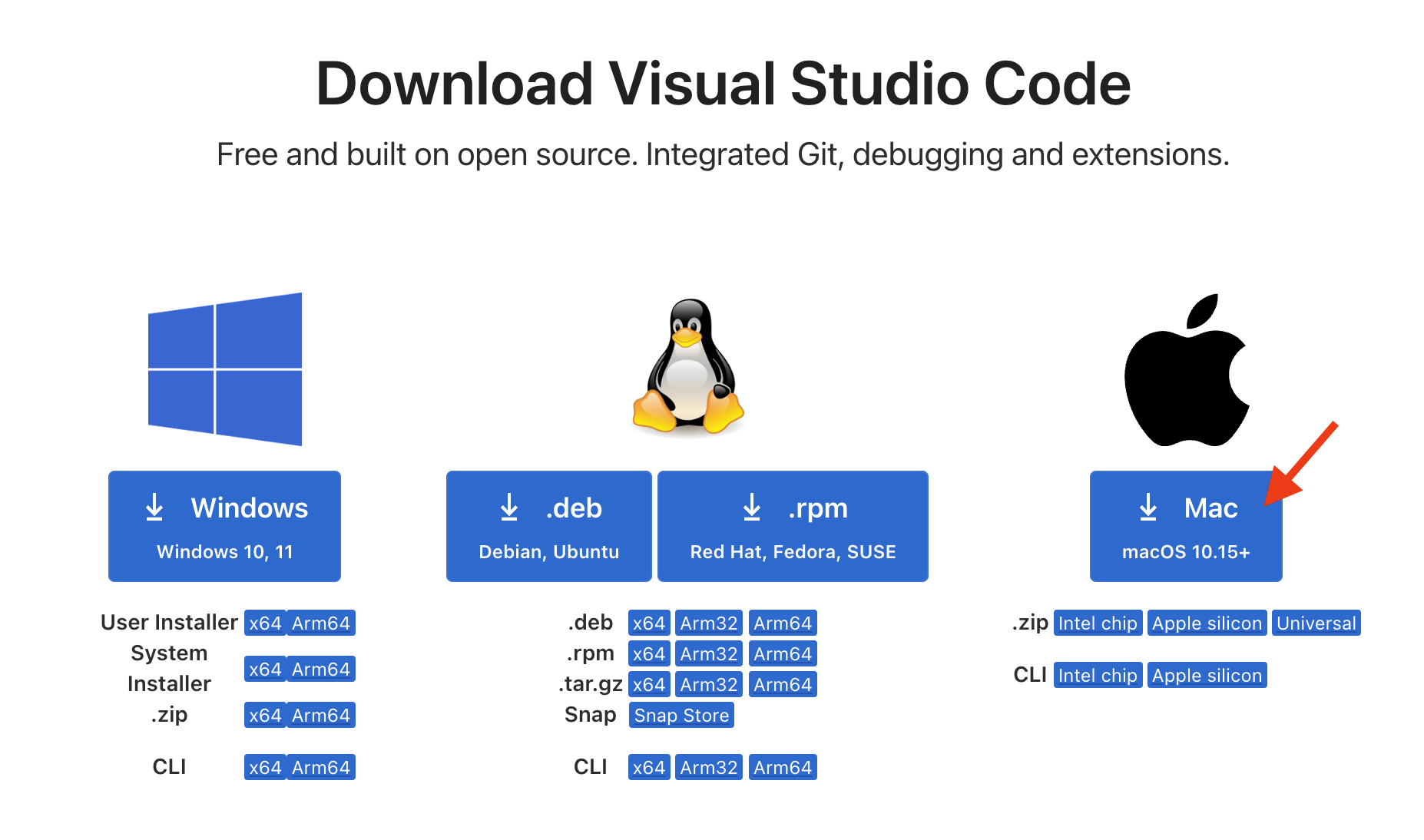 Go to Download Visual Studio Code. Installation guide can be found here. Otherwise, you can follow the instructions below.
