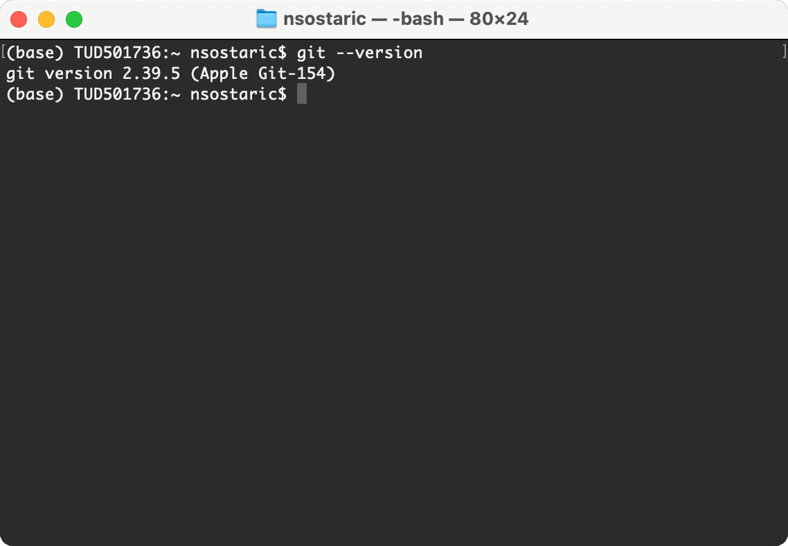 Note that the exact version displayed may be different than 2.39.5 and that is alright. If a version was displayed, you’re all set.