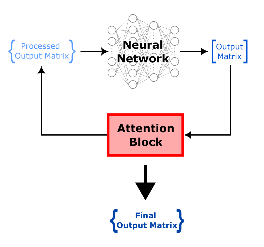 Fig. 6.3 Output matrix iteratively passed through the neural network and attention block until the final matrix is obtained.#