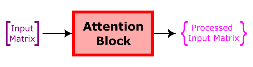 First this matrix will pass through an attention block. This attention block was a breakthrough in machine learning and is based on the paper: Attention Is All You Need.
